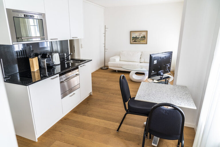 Our three Elite business apartments feature one to two rooms. The apartments each measure between 25 and 38 square metres and are designed to impress with their well-lit rooms, comfortable materials and functional, modern furnishings. They can be easily accessed via a private hotel lift in the stylish lobby of the four-star Art Déco Hotel Elite. What’s more, you can also make use of the hotel’s amenities – a fitness centre and two restaurants.